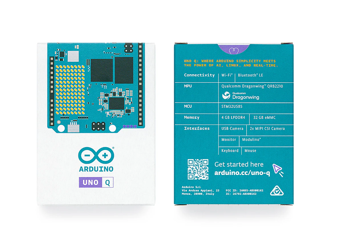 Arduino® UNO™ Q 4GB’s hybrid design makes it the perfect dual-brain platform for your next innovation. It combines a Linux® Debian-capable Qualcomm® Dragonwing™ QRB2210 microprocessor with a real-time STM32U585 microcontroller (MCU). It’s Arduino, it’s a computer, it’s anything you want to build.